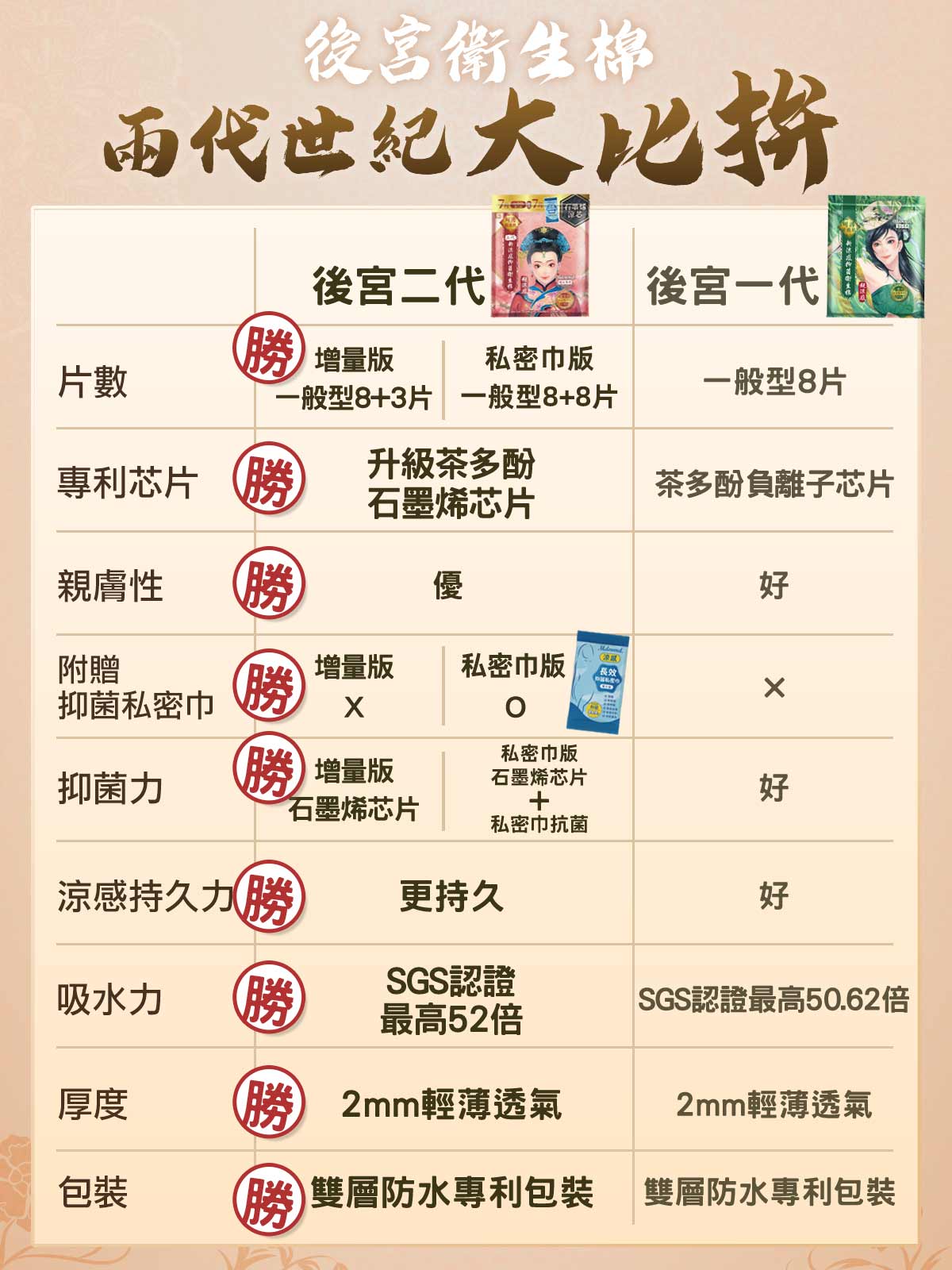 每一片後宮二代衛生棉皆附含一片「涼感長效抑菌私密巾」