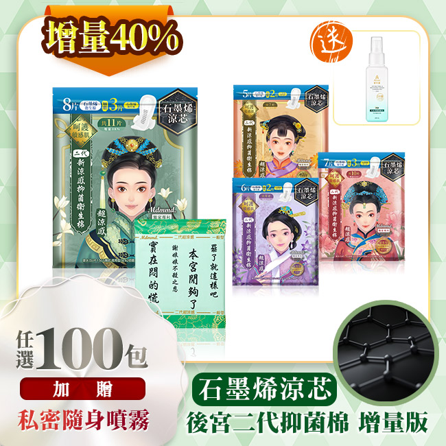 【任選18包!加贈暖宮貼1包】後宮二代石墨烯超涼感衛生棉-增量版 (可宅配、超商取貨)